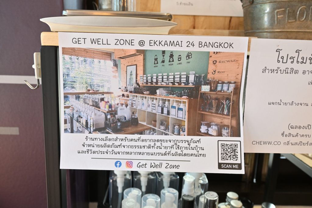 ชาวจุฬาฯ คนไหนอยากชอปปิงสินค้ารักษ์โลกและดื่มกาแฟ ทานขนมในที่เดียว ก็แวะไปอุดหนุนร้าน Get Well Zone ได้ที่คณะครุศาสตร์ จุฬาฯ ทุกวัน (วันจันทร์ – ศุกร์ 07.30-19.00 น./วันเสาร์ – อาทิตย์ 08.00 – 18.00 น.) สำหรับนิสิต อาจารย์ หรือบุคลากรที่พกขวดมาซื้อน้ำยาเอง รับส่วนลดไปเลย 5 บาท/ใบเสร็จ